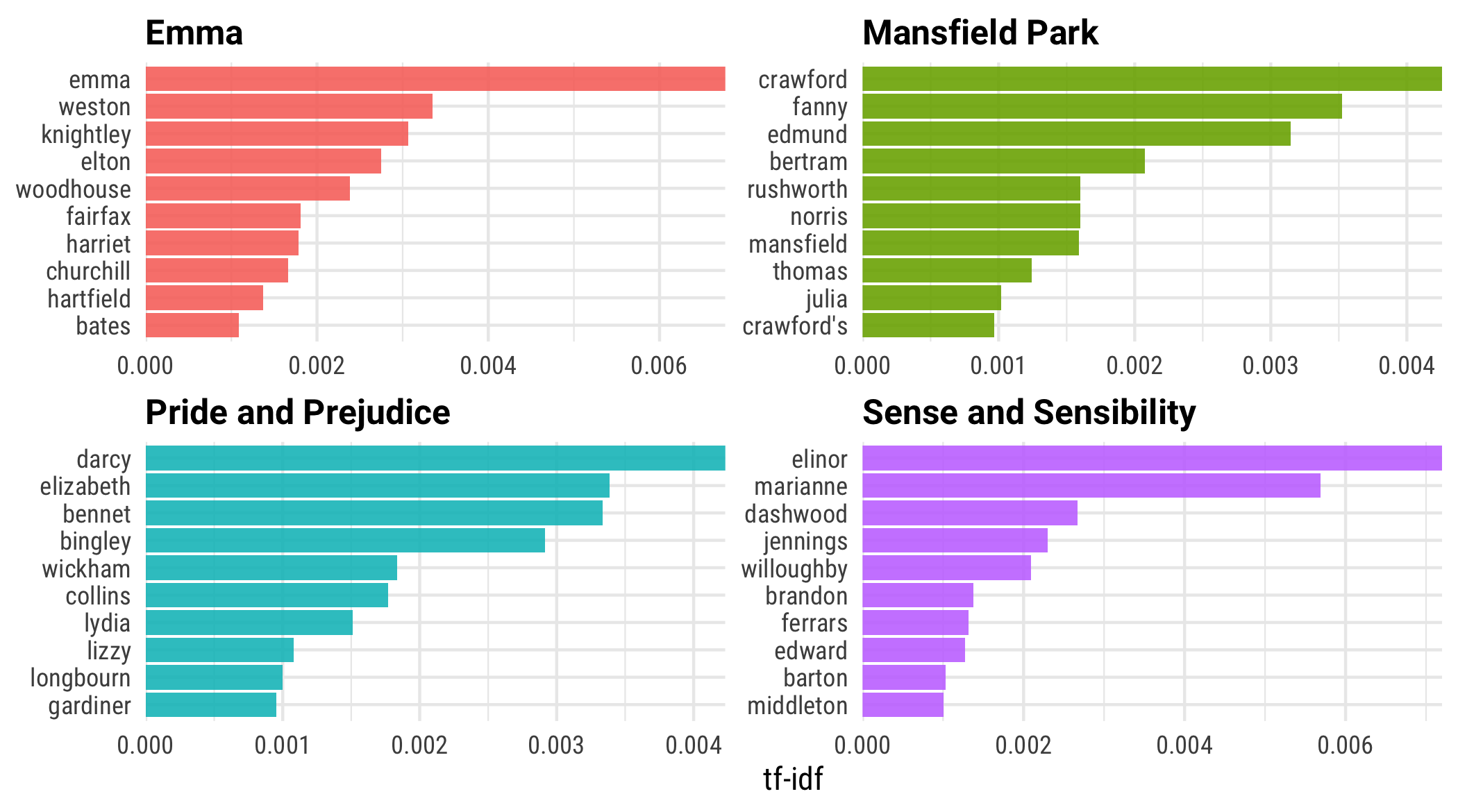 layout: true <div class="my-footer"><span>bit.ly/silge-rstudioconf-1</span></div> --- class: inverse, center, bottom background-image: url(figs/robert-bye-R-WtV-QyVnY-unsplash.jpg) background-size: cover # WELCOME! ### Text Mining Using Tidy Data Principles --- class: inverse, center, middle background-image: url(figs/p_and_p_cover.png) background-size: cover # Text Mining <img src="figs/blue_jane.png" width="150px"/> ### USING TIDY PRINCIPLES .large[Julia Silge | rstudio::conf | 27 Jan 2020] --- class: middle, center .pull-left[ # <i class="fa fa-wifi"></i> Wifi network name .large[rstudio20] ] .pull-left[ # <i class="fa fa-key"></i> Wifi password .large[tidyverse20] ] --- <img src="figs/blue_jane.png" style="position:absolute;top:30px;right:30px;" width="100px"/> ## **Workshop policies** -- - .large[Identify the exits closest to you in case of emergency] -- - .large[Please review the rstudio::conf code of conduct that applies to all workshops] -- - .large[CoC issues can be addressed three ways:] - In person: contact any rstudio::conf staff member or the conference registration desk - By email: send a message to `conf@rstudio.com` - By phone: call 844-448-1212 -- - .large[Please do not photograph people wearing red lanyards] -- - .large[A chill-out room is available for neurologically diverse attendees on the 4th floor of tower 1] --- class: right, middle <img src="figs/blue_jane.png" width="150px"/> # Find me at... <a href="http://twitter.com/juliasilge"><i class="fa fa-twitter fa-fw"></i> @juliasilge</a><br> <a href="http://github.com/juliasilge"><i class="fa fa-github fa-fw"></i> @juliasilge</a><br> <a href="https://juliasilge.com"><i class="fa fa-link fa-fw"></i> juliasilge.com</a><br> <a href="https://tidytextmining.com"><i class="fa fa-book fa-fw"></i> tidytextmining.com</a><br> <a href="mailto:julia.silge@gmail.com"><i class="fa fa-paper-plane fa-fw"></i> julia.silge@gmail.com</a> --- class: left, top <img src="figs/blue_jane.png" width="150px"/> # Meet your TAs ## π« Emil Hvitfelt (coordinator) ## π₯ Jeroen Claes ## β¨ Kasia Kulma --- class: left, top <img src="figs/blue_jane.png" width="150px"/> # Asking for help -- ## π "I'm stuck" -- ## β οΈ "I'm not stuck, but I need help on my computer" -- ## π "I need help understanding something" --- class: inverse ## Text in the real world -- - .large[Text data is increasingly important π] -- - .large[NLP training is scarce on the ground π±] --- background-image: url(figs/vexing.gif) background-position: 50% 50% background-size: 650px --- background-image: url(figs/p_and_p_cover.png) background-size: cover class: inverse, center, middle # TIDY DATA PRINCIPLES + TEXT MINING = π --- background-image: url(figs/tidytext_repo.png) background-size: 800px background-position: 50% 20% class: bottom, right .large[[https://github.com/juliasilge/tidytext](https://github.com/juliasilge/tidytext)] .large[[https://tidytextmining.com/](https://tidytextmining.com/)] --- background-image: url(figs/cover.png) background-size: 450px background-position: 50% 50% --- class: middle, center # <i class="fa fa-github"></i> # GitHub repo for workshop: .large[[rstd.io/conf20-tidytext](https://rstd.io/conf20-tidytext)] --- class: inverse ## Plan for this workshop -- - .large[EDA for text *today*] -- - .large[Modeling for text *tomorrow*] -- - .large[Log in to RStudio Cloud π»] -- - .large[Introduce yourself to your neighbors π] --- class: middle, center # <i class="fa fa-cloud"></i> # Go here and log in (free): .large[[bit.ly/rstudio-text-course](http://bit.ly/rstudio-text-course)] --- ## Let's install some packages ```r install.packages(c("tidyverse", "tidytext", "gutenbergr")) ``` --- <img src="figs/purple_emily.png" style="position:absolute;top:20px;right:20px;" width="100px"/> ## **What do we mean by tidy text?** ```r text <- c("Tell all the truth but tell it slant β", "Success in Circuit lies", "Too bright for our infirm Delight", "The Truth's superb surprise", "As Lightning to the Children eased", "With explanation kind", "The Truth must dazzle gradually", "Or every man be blind β") text ``` ``` ## [1] "Tell all the truth but tell it slant β" ## [2] "Success in Circuit lies" ## [3] "Too bright for our infirm Delight" ## [4] "The Truth's superb surprise" ## [5] "As Lightning to the Children eased" ## [6] "With explanation kind" ## [7] "The Truth must dazzle gradually" ## [8] "Or every man be blind β" ``` --- <img src="figs/purple_emily.png" style="position:absolute;top:20px;right:20px;" width="100px"/> ## **What do we mean by tidy text?** ```r library(tidyverse) text_df <- tibble(line = 1:8, text = text) text_df ``` ``` ## # A tibble: 8 x 2 ## line text ## <int> <chr> ## 1 1 Tell all the truth but tell it slant β ## 2 2 Success in Circuit lies ## 3 3 Too bright for our infirm Delight ## 4 4 The Truth's superb surprise ## 5 5 As Lightning to the Children eased ## 6 6 With explanation kind ## 7 7 The Truth must dazzle gradually ## 8 8 Or every man be blind β ``` --- <img src="figs/purple_emily.png" style="position:absolute;top:20px;right:20px;" width="100px"/> ## **What do we mean by tidy text?** ```r library(tidytext) text_df %>% * unnest_tokens(word, text) ``` ``` ## # A tibble: 41 x 2 ## line word ## <int> <chr> ## 1 1 tell ## 2 1 all ## 3 1 the ## 4 1 truth ## 5 1 but ## 6 1 tell ## 7 1 it ## 8 1 slant ## 9 2 success ## 10 2 in ## # β¦ with 31 more rows ``` --- <img src="figs/blue_jane.png" width="150px"/> ## Jane wants to know... .large[A tidy text dataset typically has] - .unscramble[more] - .unscramble[fewer] .large[rows than the original, non-tidy text dataset.] --- ## **Gathering more data** .large[You can access the full text of many public domain works from [Project Gutenberg](https://www.gutenberg.org/) using the [gutenbergr](https://ropensci.org/tutorials/gutenbergr_tutorial.html) package.] ```r library(gutenbergr) full_text <- gutenberg_download(1342) ``` .large[What book do *you* want to analyze today? π π―ββοΈ 